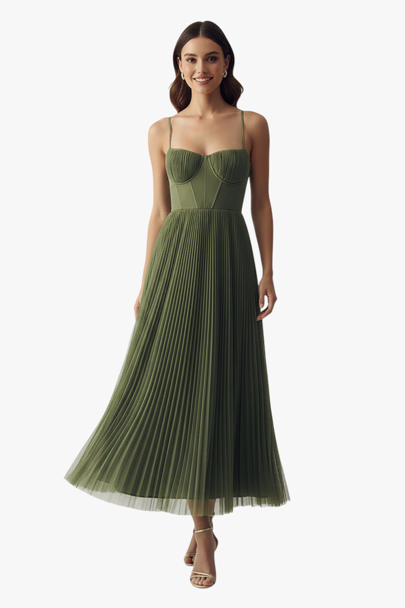 Women’s Green Evening Dress with Pleats and Lightweight